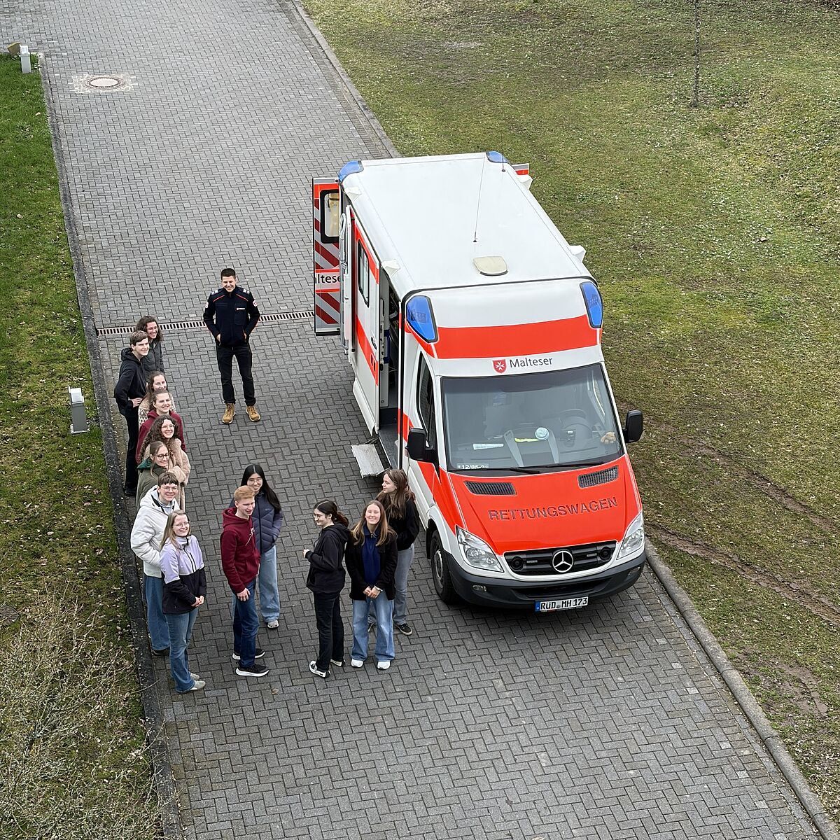 Ein besonderes Highlight erlebte kürzlich unser Schulsanitätsdienst: Ein Rettungswagen (RTW) der Malteser war zu Besuch an unserer Schule.