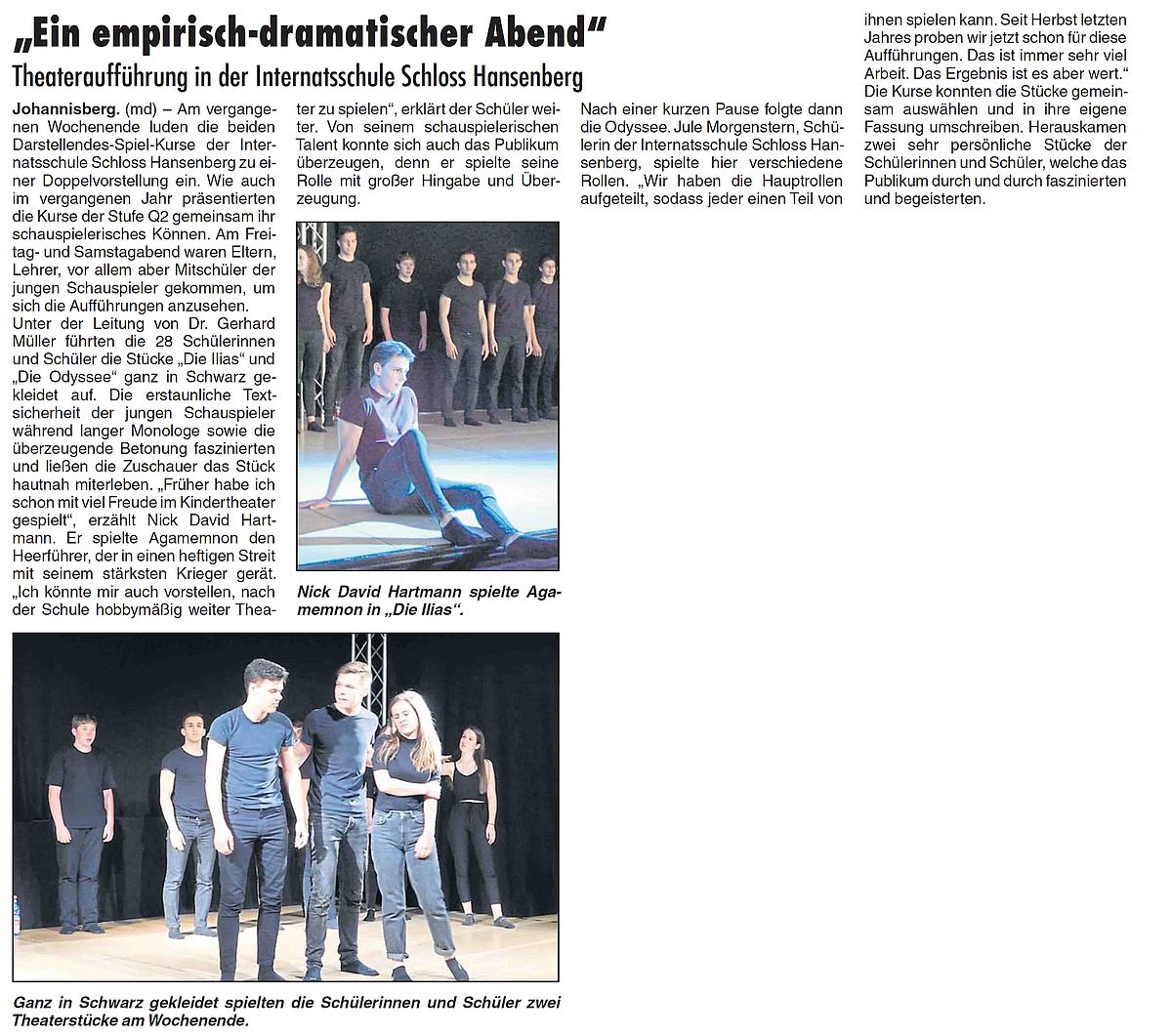 Theateraufführung an der Internatsschule Schloss Hansenberg