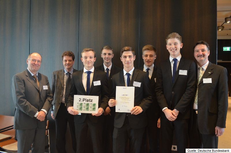 Am nächsten Tag erfolgte anschließend an die Präsentation im 13. Stock des Bundesbankgebäudes ein intensives Fachkolloquium. Nach diesem wurden wir durch den Handelsraum und das Target 2 Zentrum für den internationalen Wertpapierhandel der Bundesbank geführt.Im Anschluss an ein Mittagessen wurden dann die Urkunden durch Herrn Thiele, Vorstandmitglied der Bundesbank, übergeben. Wir haben den 2. Platz erreicht und können jedem die Teilnahme am Wettbewerb nur empfehlen. Für jeden, der durch den PoWi-Unterricht in der Q1 mit den Themen Wirtschafts- und Geldpolitik auf den Geschmack gekommen ist, ist dieser Wettbewerb für einen tieferen Einblick in die Geldpolitik ausgezeichnet geeignet.