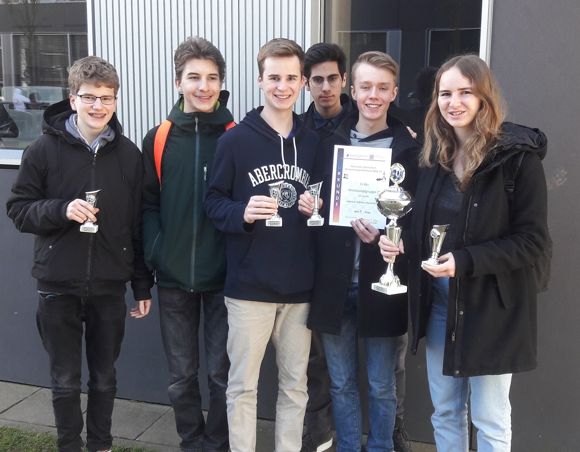 Angetreten sind wir mit einer Vierermannschaft, wobei nacheinander ausgesetzt wurde, so dass alle einmal zum Zuge kamen – um im Bild zu bleiben. Der Wettkampftag ging über fünf Runden, wobei jeder Spieler pro Runde 20 Minuten Bedenkzeit hatte; zusammen mit der Mittagspause endete der Turniertag damit zeitig am Nachmittag und für unsere Schachspieler durchaus erfolgreich: Mit nicht einer verlorenen Runde und auch beinahe allen erreichbaren Brettpunkten wurde das Team vom Hansenberg klarer Sieger. Den Sieg auskosten konnten wir dann auch noch zur Genüge – Freude an den Pokalen und Urkunden mitinbegriffen: Auf dem Rückweg waren wir staubedingt zweieinhalb Stunden unterwegs.