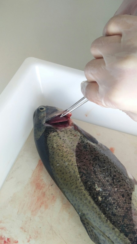 In der Doppelstunde arbeiteten wir alleine oder zu zweit mit Pinzetten, Sonden und Skalpellen an den Fischen. Wir konnten außerdem nicht nur sezieren, sondern auch mikroskopieren und unter der Stereolupe einige Teile und Gewebe genau betrachten. Frau Funke gab uns dabei keine Anweisungen zum Vorgehen, sondern ließ uns eigenständig arbeiten und entdecken. Sie unterstützte uns, indem sie uns auf einzelne oder besondere Organe aufmerksam machte und uns hin und wieder erklärte, worum es sich bei den unterschiedlichen Organen handele.