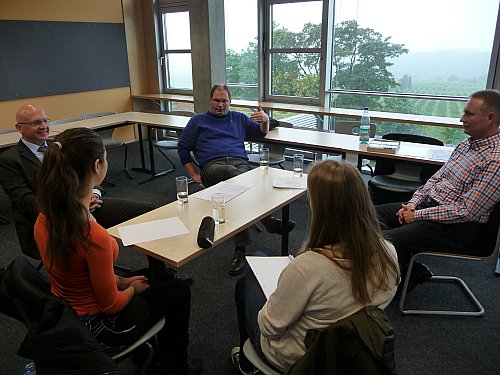In einer dreiviertel Stunde konnten die Gäste intensiv ausgefragt werden. Auf diesem Wege erhielten alle so manche überraschende Information „aus erster Hand“, wie es die Einladung der Organisatoren um die Schulelternvertretung mit Thomas Streyczek und der Betreuer der Studien- und Berufsorientierung, P. Rauh versprachen.