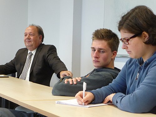 Jeder „Unterprimaner“ hatte also an diesem Vormittag die Möglichkeit, drei verschiedene Bereiche zu erkunden, z. B. Mathematik/ Physik/ Informationstechnologie, Architektur/ Journalismus, Pharmazie/ Humanmedizin, Chemie, Rechnungswesen/ Finanzen/ Steuern, Jura, Psychologie/ Psychotherapie/ Personalberatung oder Ingenieurswissenschaften/ Maschinenbau.