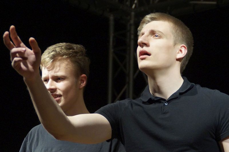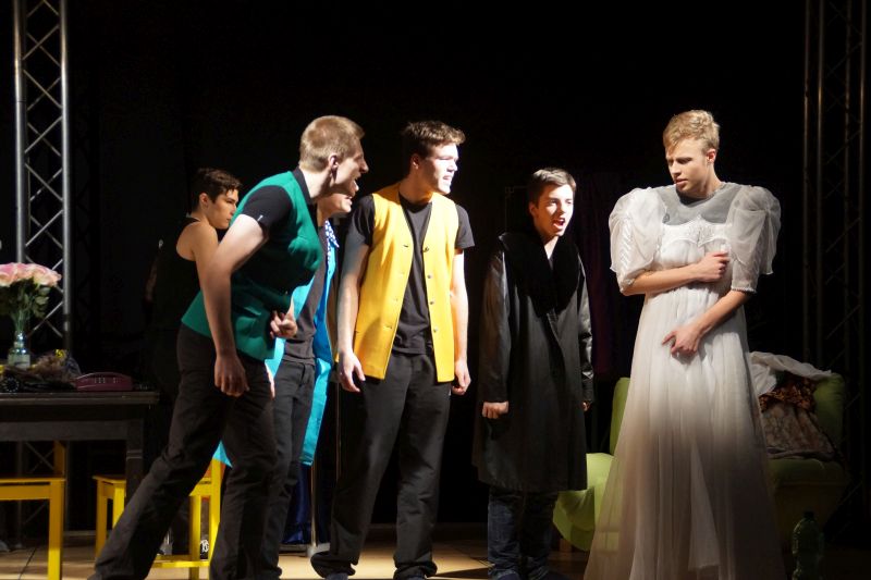 Es spielten in „Die Zofen“: Felix Badenstedt, Jonas Kaiser, Felix Roll, Carl Winterhagen, Johannes Biedermann, Jonathas Enders, Niklas Jakobs, Erik Völker, Tom Fischer und Jakob Kress