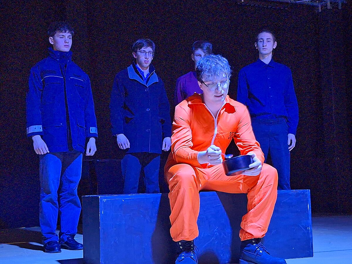 „Am Hansenberg haben wir Raum für die Kultur, als ein ganz wichtiges Gut“. So formulierte es Schulleiterin Annette Petri nach der Vorstellung. Die Schule hat sogar so viel Raum dafür, dass ganze zwei Inszenierungen geprobt und aufgeführt werden konnten. Das zweite, blutigere Stück ist „Graf Öderland“ von Max Frisch. Der Schweizer schrieb es vor seinen berühmten Stücken wie „Andorra“ oder „Biedermann und die Brandstifter“, die nicht wenige Jugendliche heute noch als Schullektüre kennen. Dem Stoff von „Graf Öderland“ geht eine Zeitungsnotiz voraus. Die Nachricht: ein völlig unauffällig lebender Bankangestellter erschlägt seine ganze Familie mit seiner Axt, ohne einen Grund angeben zu können. Max Frisch verband diese skurrile Begebenheit mit Erinnerungen von Seminaren eines Staatsanwalts, der an selbstgesetzten Lebensaufgaben scheiterte und Selbstmord beging. Beide Personen kommen abgewandelt auch als Figuren in „Graf Öderland vor“. Da klagt ein Staatsanwalt einen Mörder an, der ohne erkennbares Motiv gehandelt hatte. Er gerät darüber in eine Krise. Eines Abends erzählt ihm sein Dienstmädchen Hilde beim Feueranzünden ein Märchen. Darin geht es um den Graf Öderland mit der Axt in der Hand, der überall, wo er hinkomme, Unheil stifte. Dies veranlasst den Staatsanwalt dazu, alle und alles um ihn herum zu verlassen. Er hinterlässt eine erschrockene, ihm aber ohnehin entfremdete Frau und flieht aufs Land. Bei einer Bauernfamilie eignet er sich dann die Identität des Graf Öderland an. Er scharrt Anhänger um sich und führt unter dem Zeichen der Axt eine Rebellengruppe an. Von nun an wird die Handlung schneller, aber nicht weniger skurril. Die Rebellen graben einen Tunnel unter die Residenz, wo Monarchie und Politik gerade fröhlich einen Empfang feiern. Nur knapp gelingt die Übernahme der Residenz. In der letzten Szene wacht der Graf in seinem alten Haus auf. Zunächst denkt er wohl, er hätte das alles nur geträumt. Doch dann erkennt er sein Büro als durchsucht, Ehefrau Elsa samt heimlichen Geliebten versuchten vergeblich, ihn zu finden. Und doch kann am Ende niemand die Machtübernahme aufhalten – die Rebellen siegen, und das Stück endet mit dem Angebot des greisen Staatspräsidenten an den Staatsanwalt, die Kontrolle im Staate nun auch formell zu übernehmen.