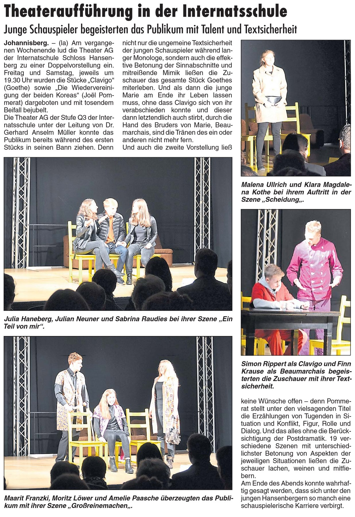 Theateraufführung in der Internatsschule