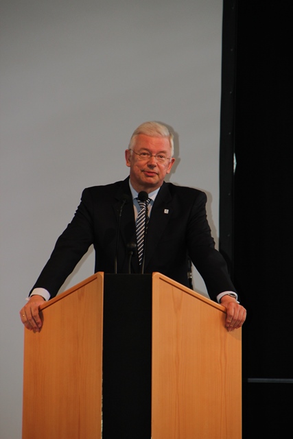 Das letzte Wort hat natürlich der Mann des Tages selbst: Wolfgang Herbst verabschiedet sich vom Berg, dankt seinen Mitstreitern und macht vor allem klar, dass er seine Zeit an der ISH, aber auch die Zeit als Lehrer in Bayern und den Niederlanden, in seinem Herzen behält. Seine Motivation (und die möchte er an dieser Stelle den Kollegen weitergeben) ist von jeher die Weitergabe der immensen Bedeutung der Bildung an die Schüler. Er ist nie müde geworden, diese Begeisterung zu vermitteln – und sei es unter Zuhilfenahme eines Zitats von Benedikt von Nursia…