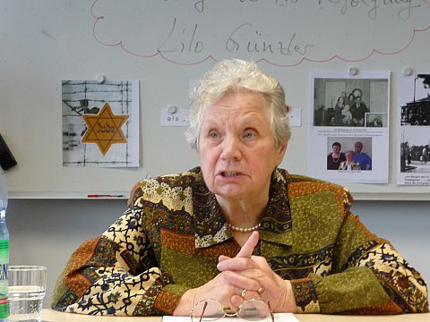 Mutter, ihrem „arischen“ Vater und ihrem jüdischen Halbbruder in Frankfurt. „Mit fünf Jahren endete meine Kindheit“ so Lilo Günzler. Schon damals musste sie die Unterschiede in der Behandlung von Juden erleben, obwohl sie katholisch getauft worden war und auch nur zur Hälfte jüdisch geboren wurde. Als Kind konnte sie nicht verstehen was hinter diesen Vorkommnissen steckte und traute sich auch nie nachzufragen. Alles was Lilo Günzler an „Juden-Behandlung“ mitbekam, versetzte sie in große Angst um ihre Mutter und ihren Bruder. Mit 12 Jahren musste sie dann erleben, wie die beiden mit dem letzten Transport aus Frankfurt nach Theresienstadt deportiert wurden und ihr Vater zu einem Volkssturm bestellt wurde. Alleine verbrachte Frau Günzler im Keller die Zeit bis sie das große Glück erleben durfte alle drei Familienmitglieder wieder in ihre Arme schließen zu dürfen.Die Familie schwor sich ab dem Tag ihres Wiedersehens nie wieder über diese Zeit und ihr dadurch widerfahrenes Schicksal zu reden. Sie wollten alles vergessen, was sie an diese Zeit erinnern konnte, auch die vielen gutherzigen Menschen, die ihnen die Zeit über ihre Hilfe zur Verfügung stellten. Den Kontakt zu all jenen brachen sie vollkommen ab. Nach 60 Jahren Kriegsende brach Lilo Günzler ihr Schweigen und schrieb sogar ein Buch über ihre berührende Geschichte. Sie berichtet vor allem jungen Menschen von ihrer Kindheit, damit sie das große Glück wertschätzen, heutzutage in einem freien Staat aufwachsen zu dürfen. Sie stößt dabei auf große Begeisterung und Interesse.
